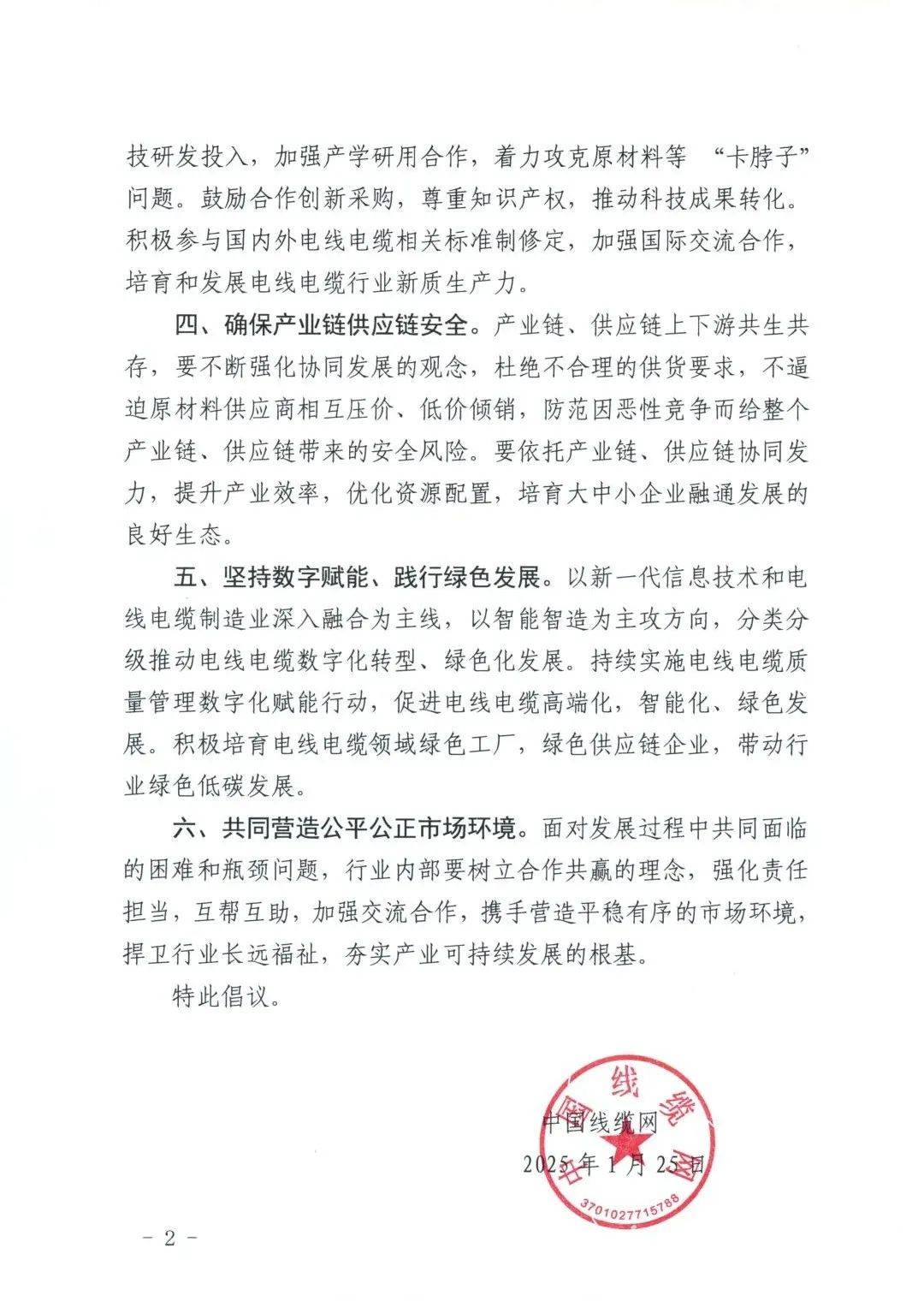 《倡議書(shū)》指出,“內(nèi)卷式”競(jìng)爭(zhēng)本質(zhì)上是一種低水平、重復(fù)性的過(guò)度競(jìng)爭(zhēng),是一種停滯不前卻耗費(fèi)大量資源的惡性競(jìng)爭(zhēng)模式。在這種模式下,企業(yè)間為爭(zhēng)奪市場(chǎng)份額,互踩互黑、低價(jià)傾銷,參與各方在無(wú)形中被迫不斷加碼,大量人力、物力和精力被消耗在無(wú)效競(jìng)爭(zhēng)中,造成“收益努力比”大幅下降,利潤(rùn)空間被嚴(yán)重?cái)D壓,企業(yè)在技術(shù)創(chuàng)新和人才培育等關(guān)乎長(zhǎng)遠(yuǎn)發(fā)展的投入上有心無(wú)力,被迫背離以創(chuàng)新驅(qū)動(dòng)、價(jià)值創(chuàng)造為核心的發(fā)展正軌。采購(gòu)方在短期內(nèi)或許能從低價(jià)混戰(zhàn)中獲取一些好處,但從長(zhǎng)遠(yuǎn)來(lái)看,這種惡性競(jìng)爭(zhēng)的后果必然以犧牲產(chǎn)品和服務(wù)的質(zhì)量為代價(jià),最終受害的還是采購(gòu)方。從宏觀層面看,“內(nèi)卷式”競(jìng)爭(zhēng)給產(chǎn)業(yè)鏈和供應(yīng)鏈的安全帶來(lái)了風(fēng)險(xiǎn),導(dǎo)致行業(yè)發(fā)展停滯不前,阻礙產(chǎn)業(yè)結(jié)構(gòu)優(yōu)化升級(jí),讓資源無(wú)法順暢流向更具創(chuàng)新性、更具發(fā)展?jié)摿Φ念I(lǐng)域,嚴(yán)重制約經(jīng)濟(jì)社會(huì)的高質(zhì)量發(fā)展,“內(nèi)卷式”競(jìng)爭(zhēng)已對(duì)整個(gè)電線電纜行業(yè)乃至整個(gè)經(jīng)濟(jì)生態(tài)造成嚴(yán)重?fù)p害。讓我們攜手并肩,果敢地向“內(nèi)卷式”競(jìng)爭(zhēng)宣戰(zhàn),合力營(yíng)造公平公正的市場(chǎng)環(huán)境,為推動(dòng)經(jīng)濟(jì)持續(xù)回升向好,為經(jīng)濟(jì)社會(huì)高質(zhì)量發(fā)展貢獻(xiàn)力量。